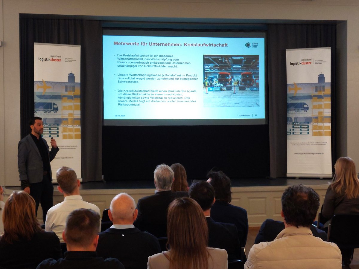 Deborah Strub, Logistikcluster Region Basel, begrüsste die Runde und erinnerte an die vielfältigen Aktivitäten des Clusters – vom Leitfaden nachhaltige Logistik über die Praxiszirkel 1–3 bis hin zu konkreten Formaten rund um Nachhaltigkeit und Digitalisierung in der Logistikbranche. Praxisnah, vernetzend und mit klarem Fokus auf Umsetzung.